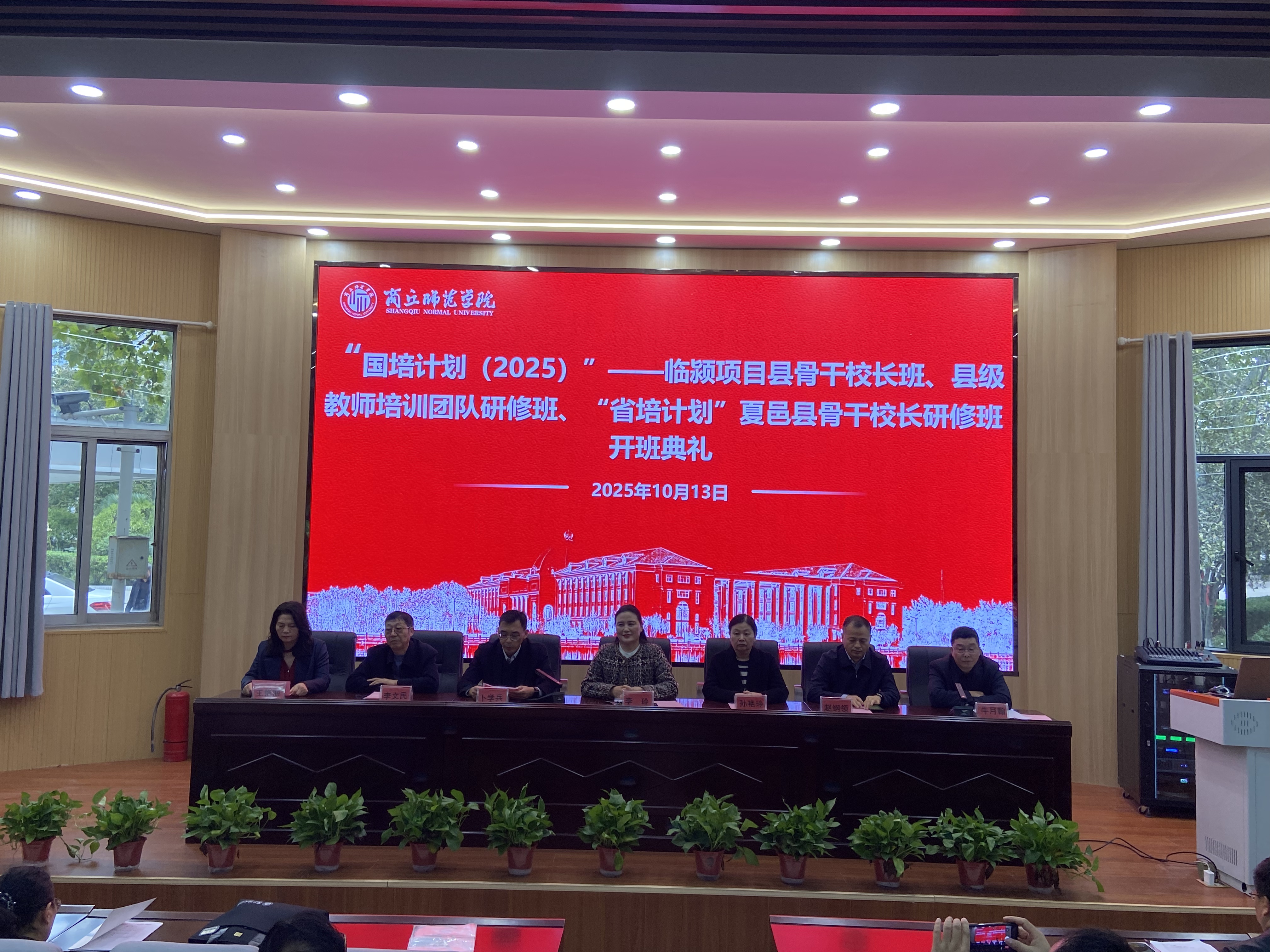 10月13日下午,由我校承训的“国培计划(2025)”临颍项目县骨干校长、教师培训团队研修班;“省培计划(2025)”夏邑县骨干校长研修班在睢阳校区隆重举行开班仪式。继续教育学院院长李玲,临颍县教体局副局长卜学兵出席开班仪式,继续教育学院党总支书记牛月翰主持开班仪式。
